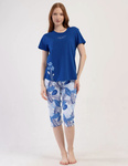 piżama damska KWIATY granat/beż 2XL-3XL (48-50)