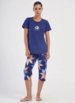 piżama damska KWIATY granat/beż M/38