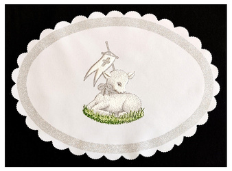 SERWETKA WIELKANOC NR026/BA-SR OV 25x35cm BIAŁA/SREBRO